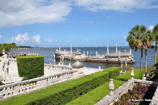 The top and last image is Vizcaya in Miami. This was a Spanish castle brought over brick by brick and reassembled in Miami on the water. Miami-Dade county took it over and it is overgrown and in disrepair. I would not recommend this tour for anyone for the $15 you would spend. The middle image is the miami skyline...