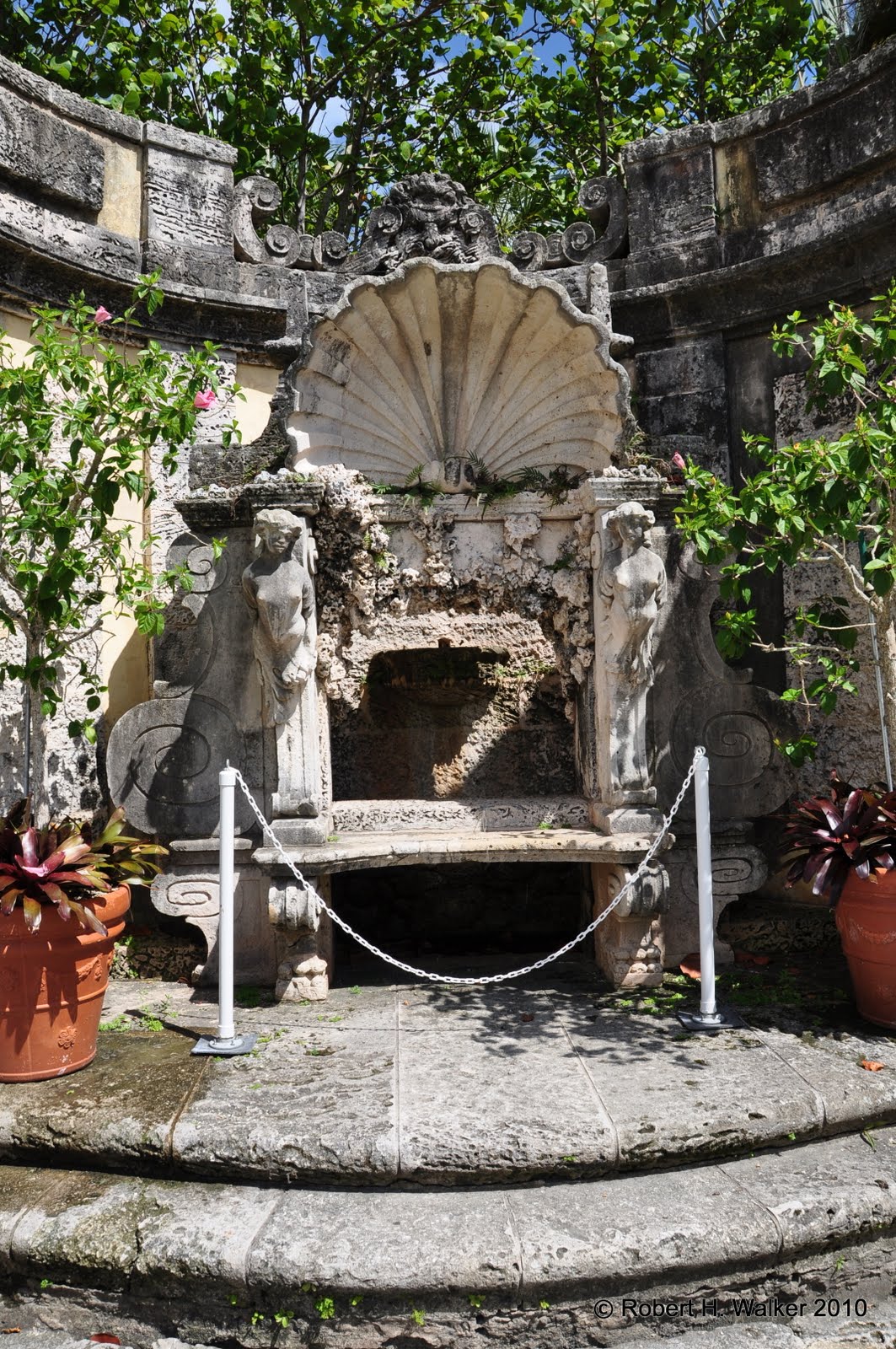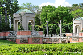 Mr. Deering used the Caravel, which is a type of ship style that was heavily used in the Age of Exploration as his symbol and emblem of estate Vizcaya. The ship of coral in the rear of the building is very beautiful and enduring. I have several pictures of it on the website. French, Italian and European influences mark the gardens and villa architecture of the estate Vizcaya. This is a wonder spot to have a garden wedding ceremony.