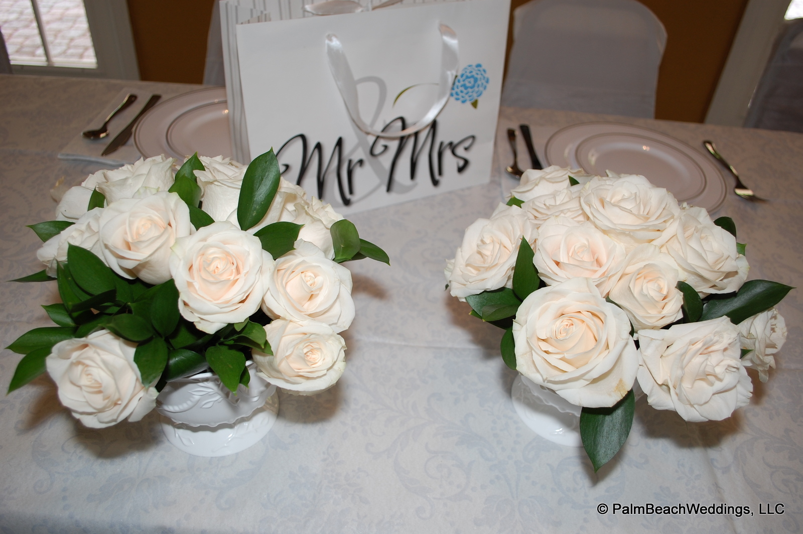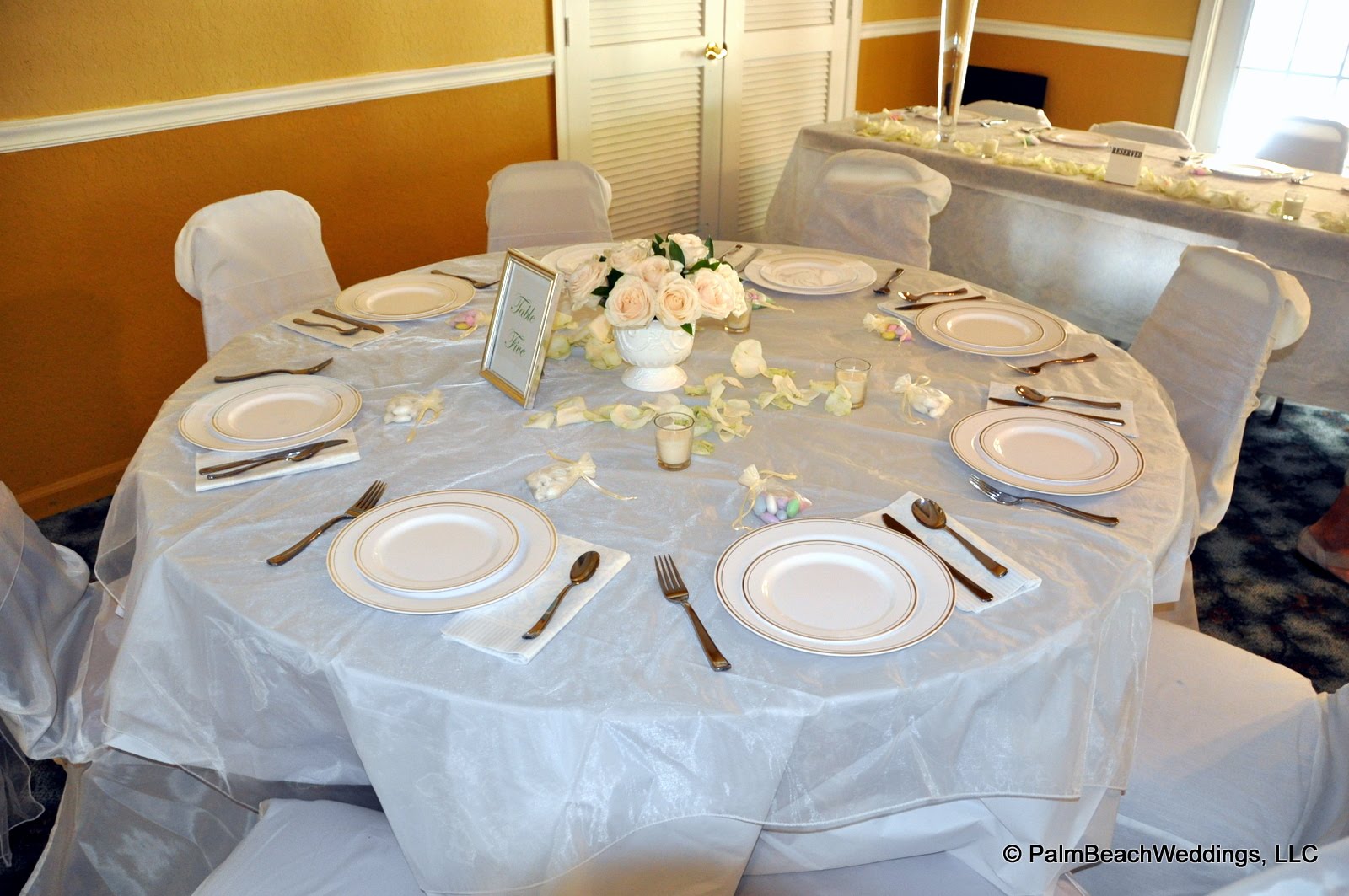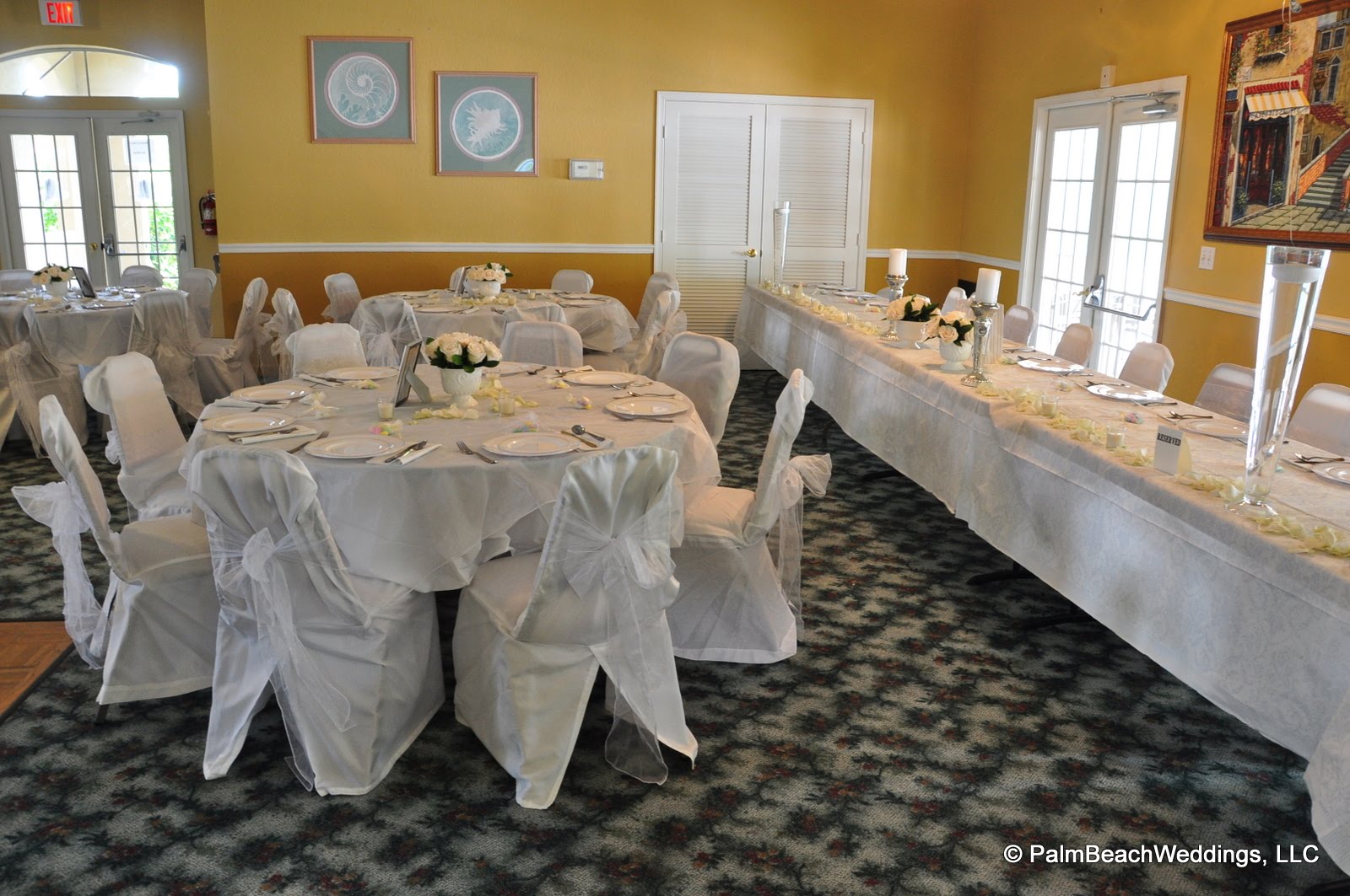 This is the handy work of Fabulous Wedding Planning. She does wonderful work and I recommend her to all. I have seen her do small intimate beach weddings and these pictures were taken in the club house at a gated community. Click on the below link to go to her website. Her name is Amy and she will take care of the decor for your wedding.